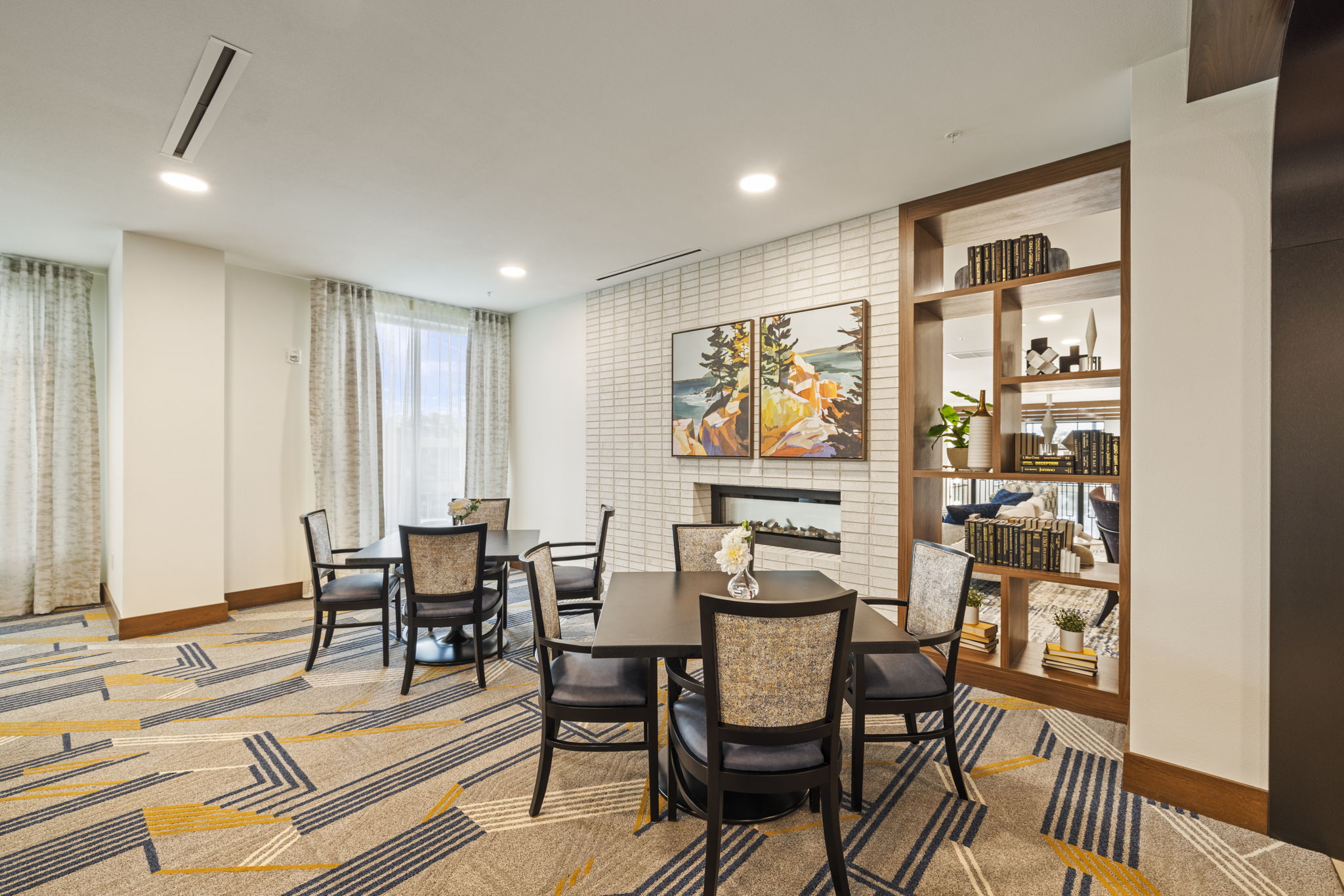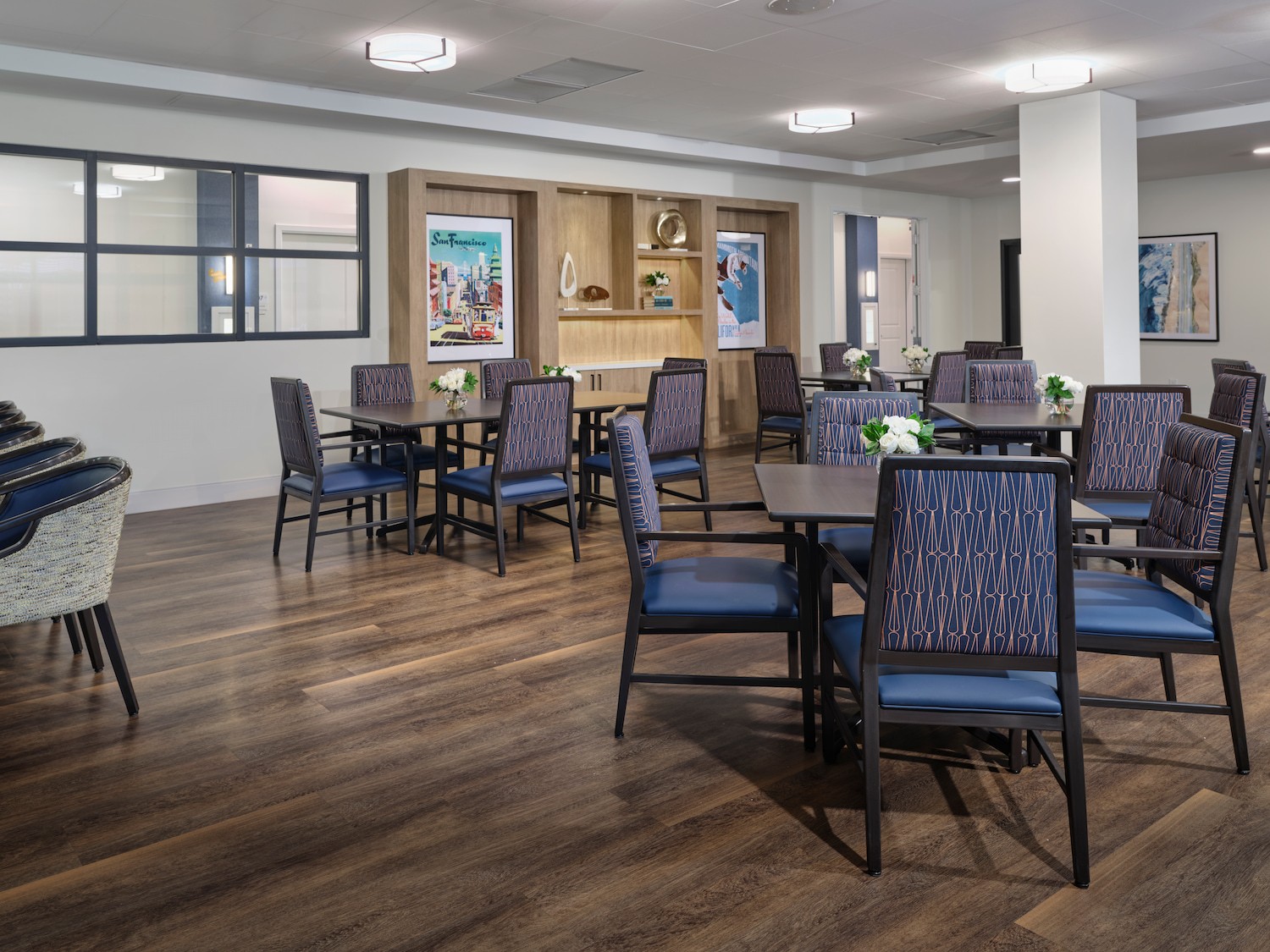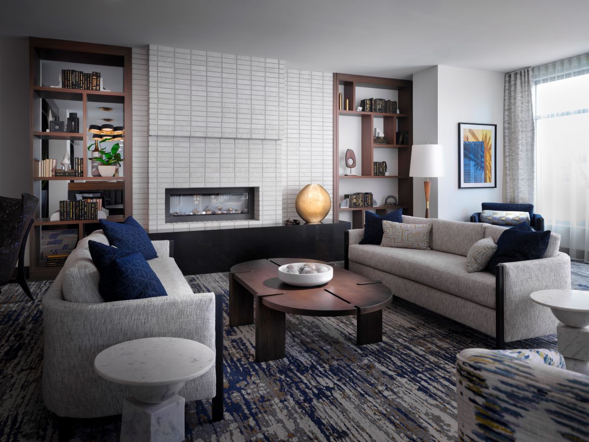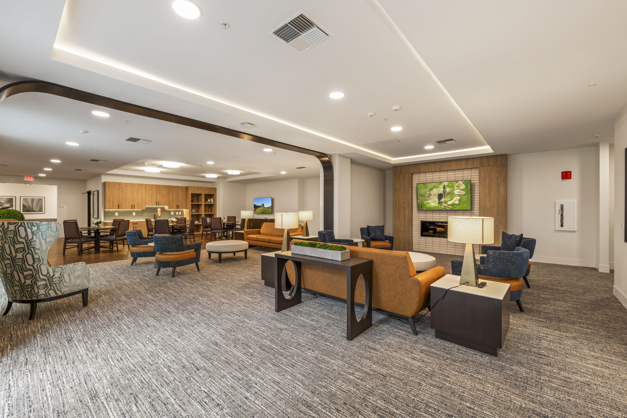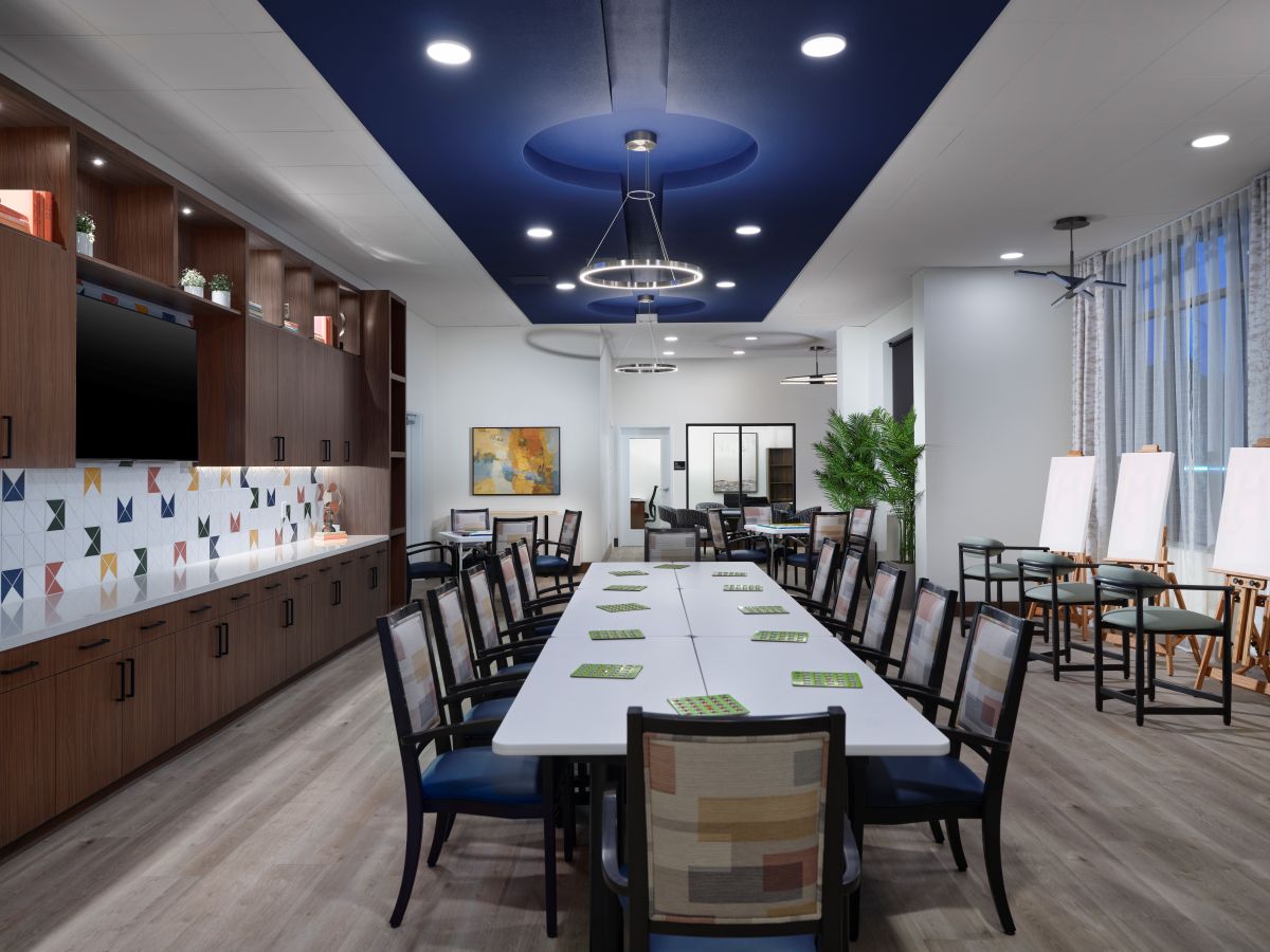 Bellara is a senior living community in the heart of Hayward, California, where our design ethos seamlessly intertwines with the vibrant spirit of the surrounding community. Bellara, spanning 191,842 square feet, is home to 157 units of assisted living and memory care units. The mid-century modern aesthetic—with its clean lines, vibrant colors, and timeless appeal—not only elevates the interior spaces but also resonates with the dynamic energy of Hayward. Bellara’s 18,821 SF of thoughtfully designed common amenity space includes a large 2nd level courtyard, salon, theater, fitness center, activity room, large double height lobby, bistro area, and lounge area. As a design firm, we believe in creating environments that not only meet the needs of the residents but also celebrate the essence of the local community—as reflected in our design of Bellara.