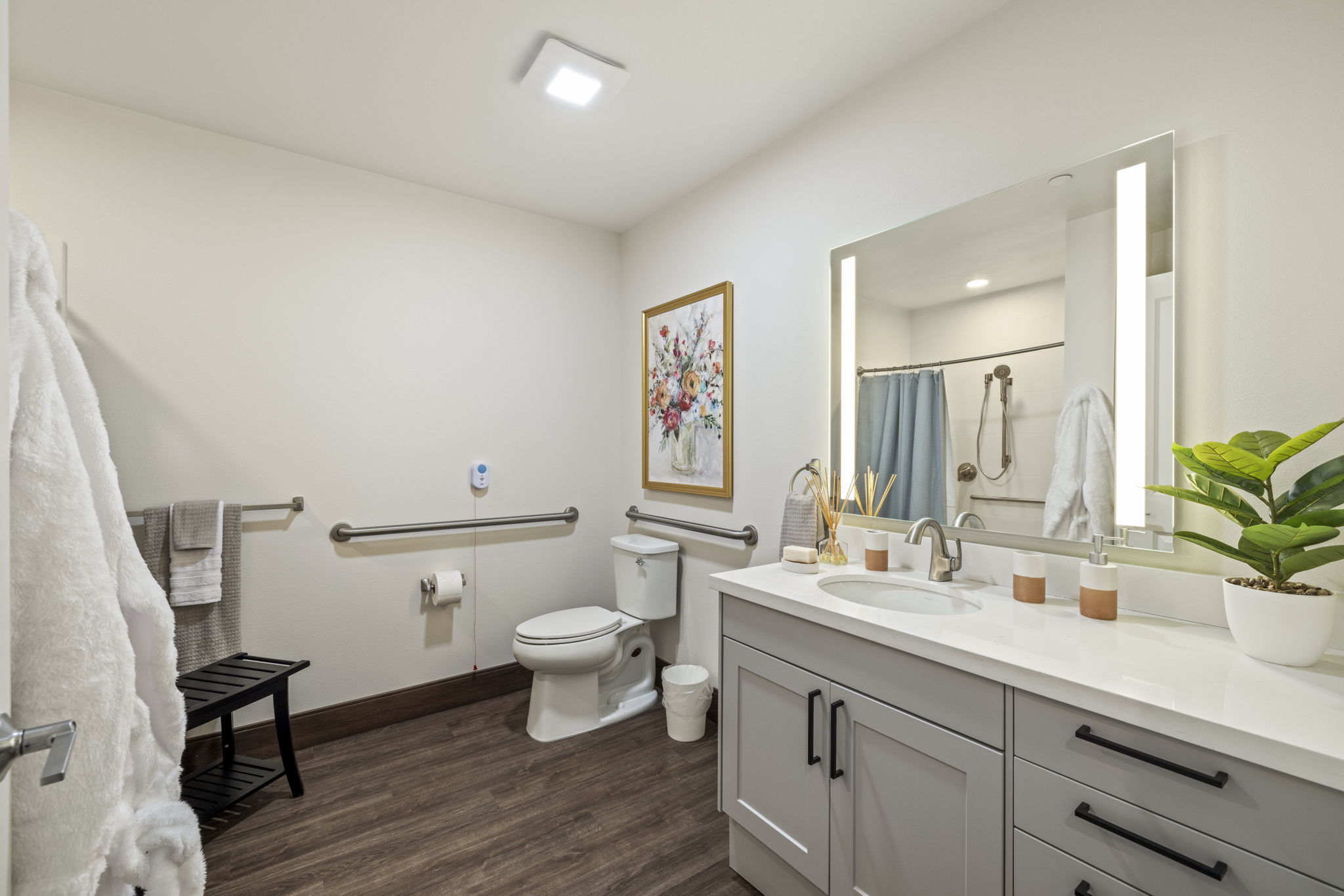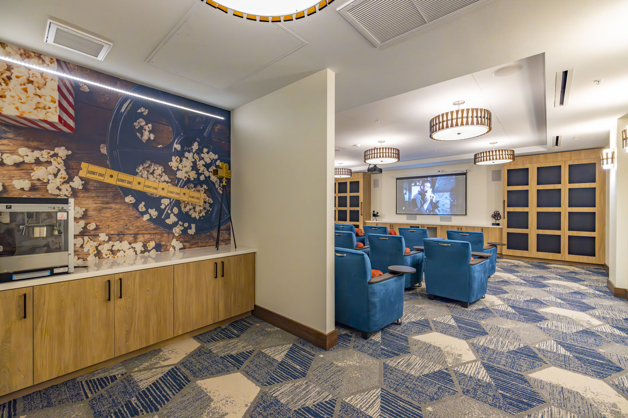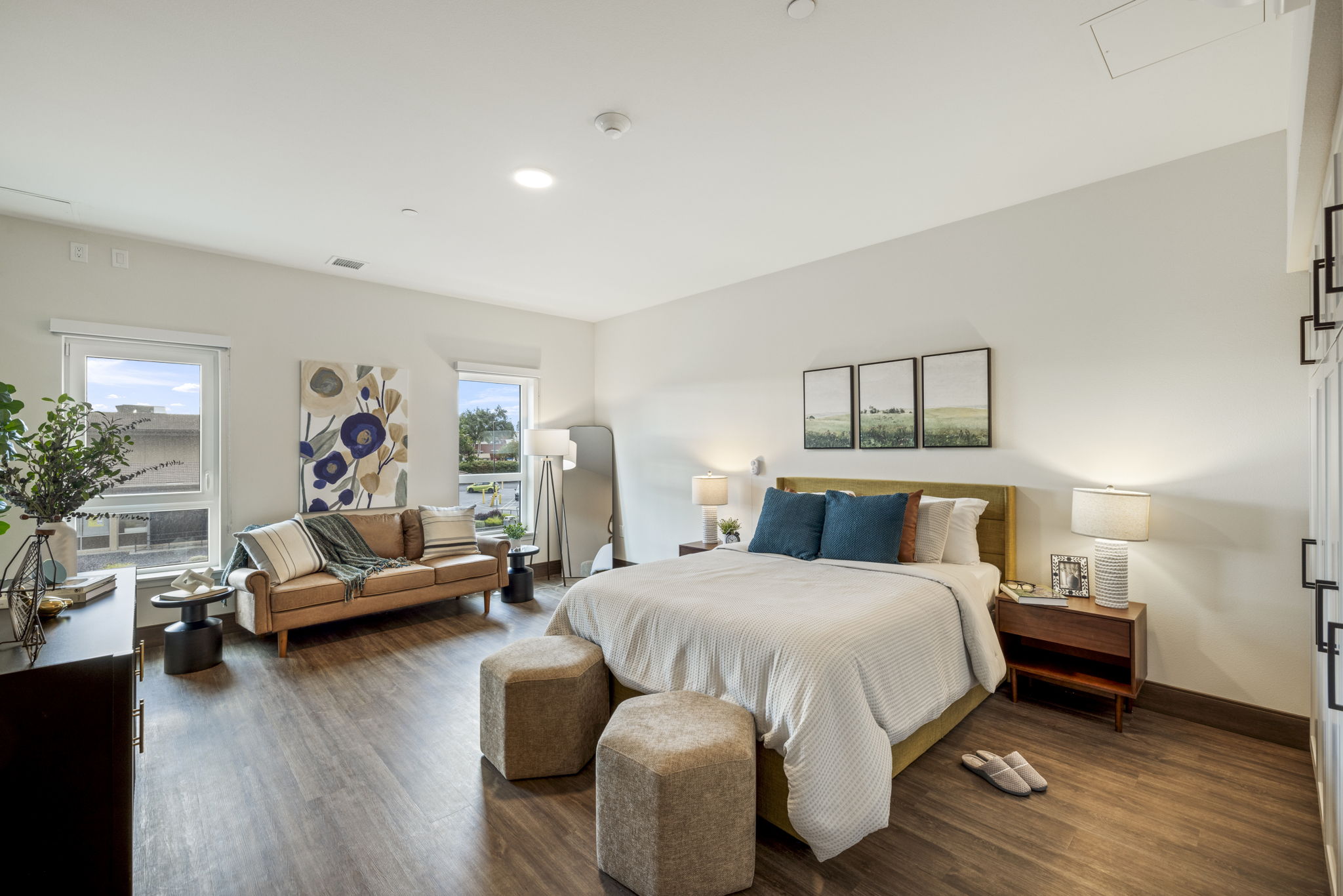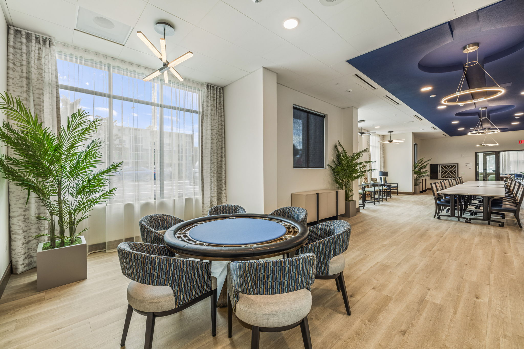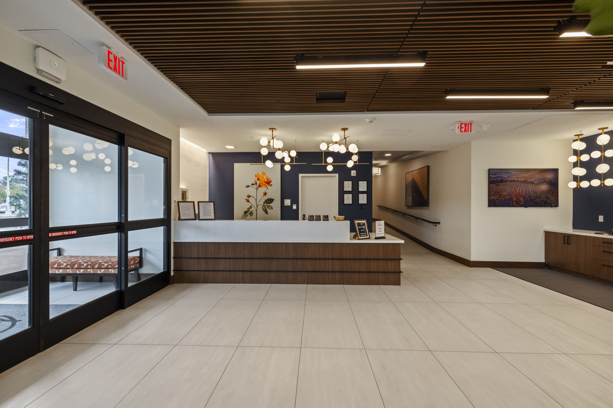 Bellara is a senior living community in the heart of Hayward, California, where our design ethos seamlessly intertwines with the vibrant spirit of the surrounding community. Bellara, spanning 191,842 square feet, is home to 157 units of assisted living and memory care units. The mid-century modern aesthetic—with its clean lines, vibrant colors, and timeless appeal—not only elevates the interior spaces but also resonates with the dynamic energy of Hayward. Bellara’s 18,821 SF of thoughtfully designed common amenity space includes a large 2nd level courtyard, salon, theater, fitness center, activity room, large double height lobby, bistro area, and lounge area. As a design firm, we believe in creating environments that not only meet the needs of the residents but also celebrate the essence of the local community—as reflected in our design of Bellara.